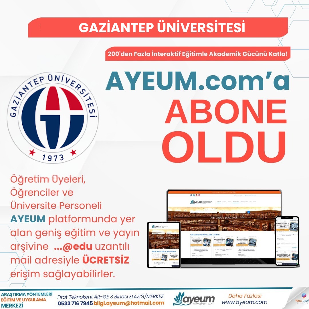 AYEUM: Sosyal, Fen, Sağlık ve eğitim bilimlerinde kullanılan nitel, nicel ve karma yöntemler hakkında araştırmacılara yönelik online eğitim, yüz yüze eğitim ve danışmanlık hizmeti vermek üzere kurulmuş akademik bir eğitim platformudur.